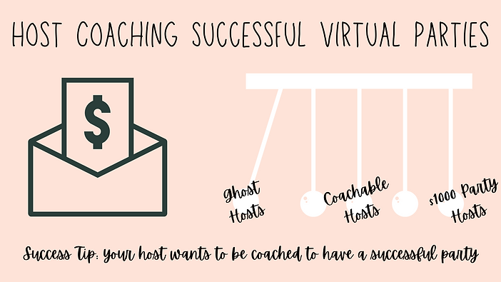 The ask for bookings is easy, but the Host Coaching for your parties will determine your paycheck. This starts even before the party begins. When you are consistently host coaching your hosts and running successful virtual parties, you will have successful shows 80% of the time. It’s important to remember that you will have hosts that fall on both ends and in the middle of a pendulum and there will be some hosts that are uncoachable. It’s okay. This is why it is so important to consistently book 4 parties a week so when you do have a party that doesn’t go well, you can be excited about the others and still meet your income goal.